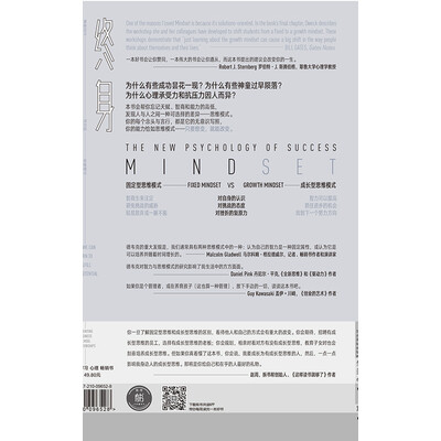 ◎ 夸孩子“你好聪明”还是“你真用功”更有意义?如果一段感情需要努力经营,意味着我们注定不适合在一起?一位天才老板带领一群天才员工,就一定能缔造卓越?思维模式的不同影响着我们生活和工作的方方面面,而你有充分的机会与可能扭转自己的思维模式,改变前进的方向。