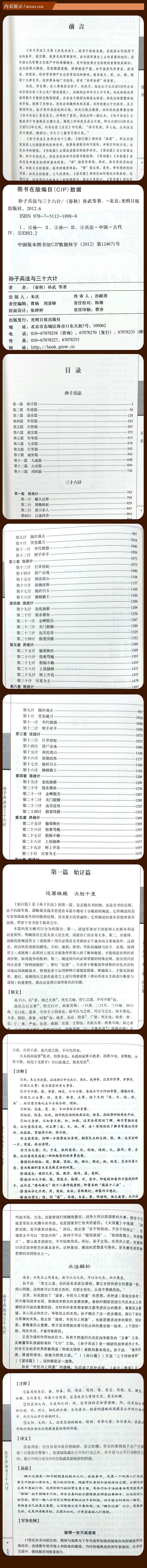《孙子兵法》是我国现存最早的一部军事专著。据史料记载,《孙子兵法》为春秋末年吴国的伟大军事家孙武所著。《孙子兵法》共分十三篇,虽然只有五千余言,但其内容包罗万象、博大精深,涉及战争规律、哲理、谋略、政治、经济、外交、天文、地理等方面内容,堪称古代兵学理论的宝库和集大成者,是中国古典军事文化遗产中的璀璨瑰宝,是中国优秀文化传统的重要组成部分。