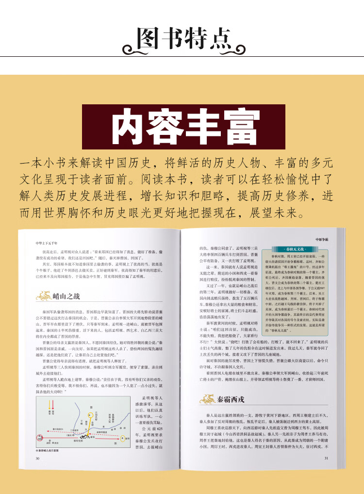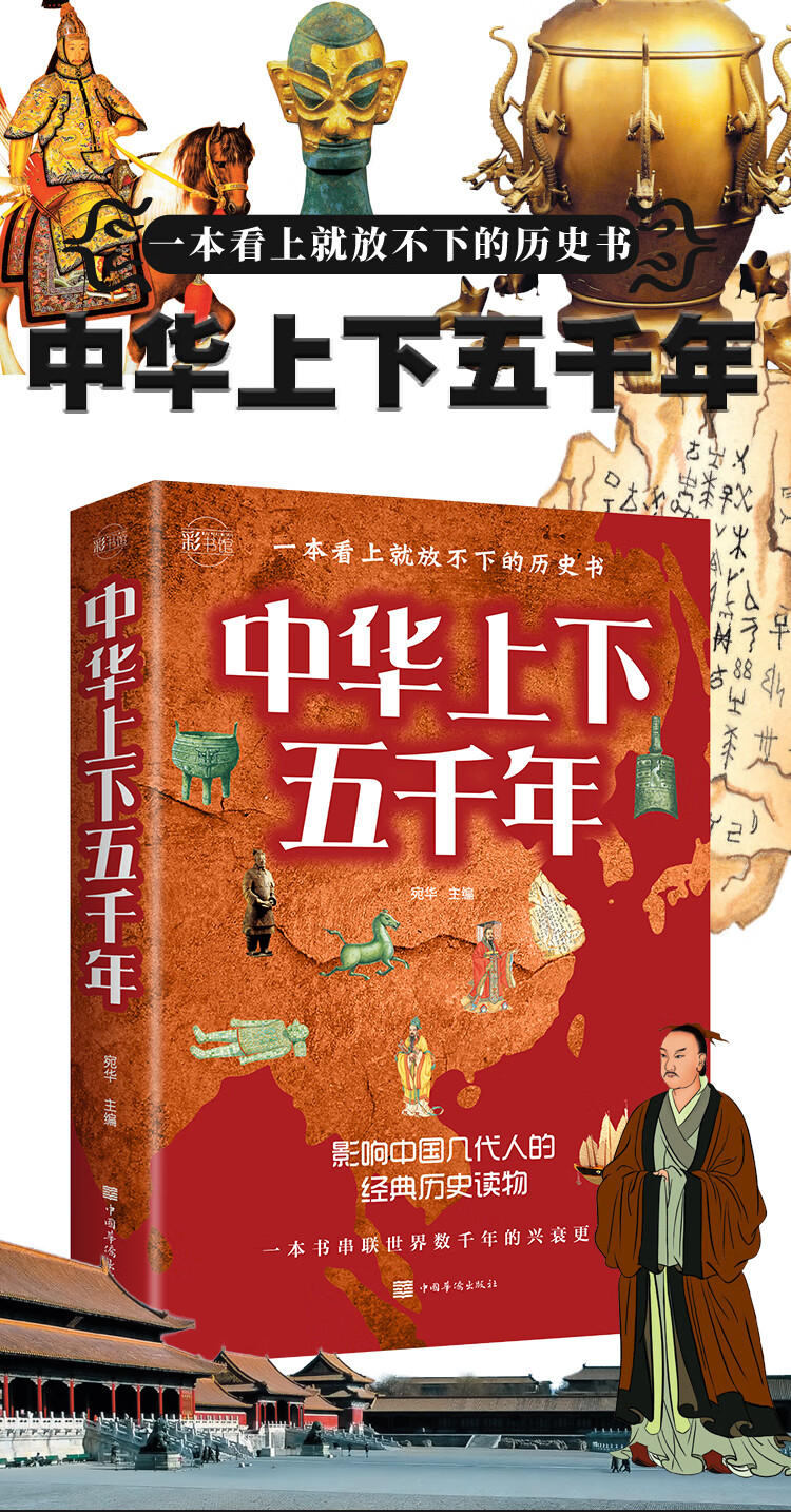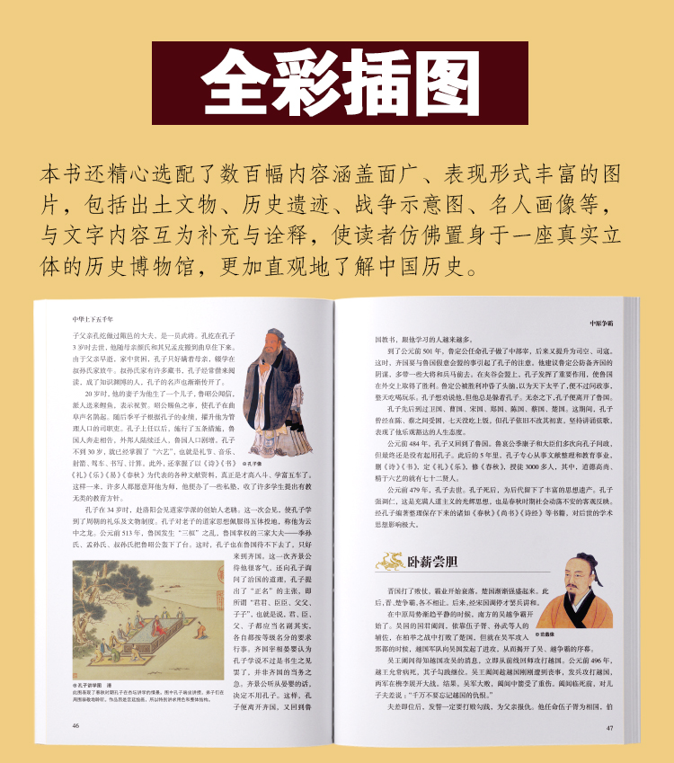 本书还精心选配了数百幅内容涵盖面广、表现形式丰富的图片,包括出土文物、历史遗迹、战争示意图、名人画像等,与文字内容互为补充与诠释,使读者仿佛置身于一座真实立体的历史博物馆,更加直观地了解中国历史。简洁精要的文字,配以多元化的图像,打造出一个立体直观的阅读空间,使读者获得图与文赋予的双重享受。