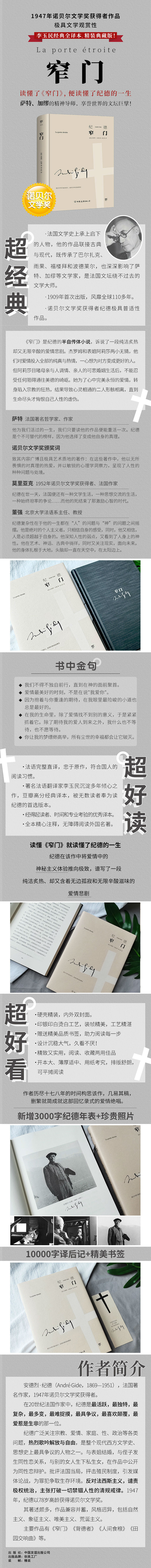 然而,纪德的迷宫则不同,它不仅令人迷惑,还有一种不可思议的特点:一般人很难进入。他的每部作品,都是他这座迷宫的一道窄门;他的许多朋友、绝大部分读者,从这种窄门挤进去,仅仅看到一个小小的空间,只好带着同样的疑惑又退了出来。至于他的敌人,往往连窄门都闯不进去,只好站在门口大骂一通了。