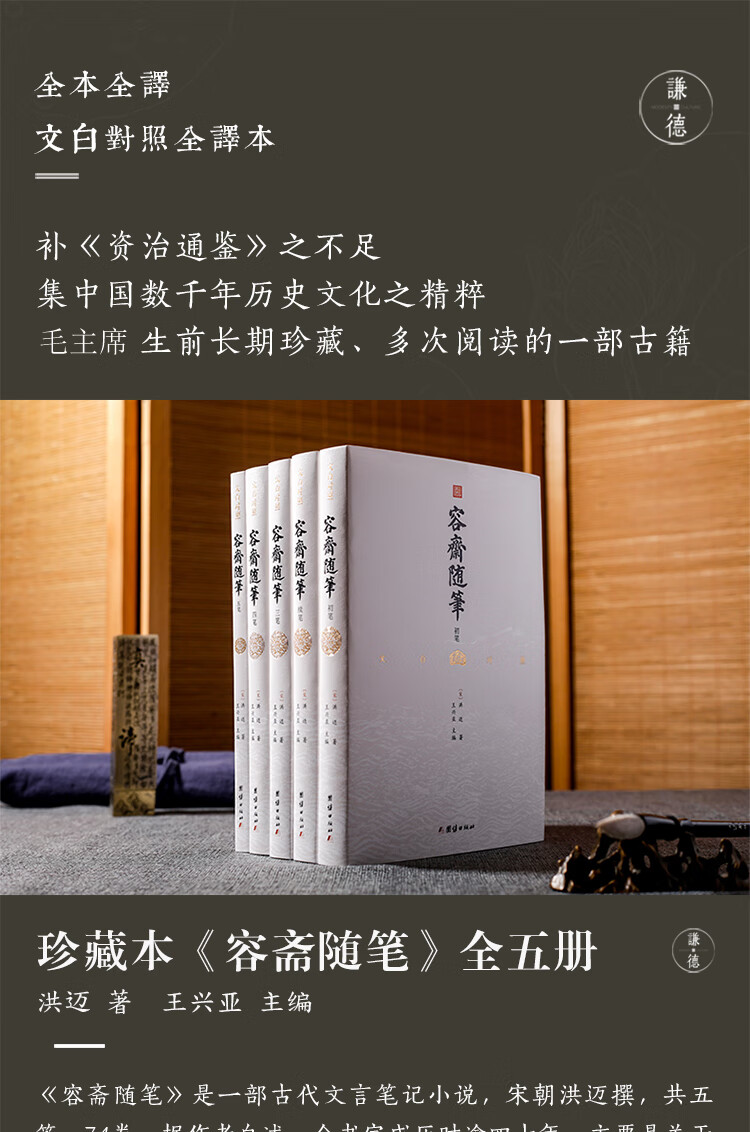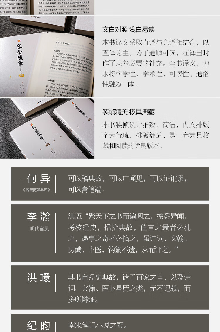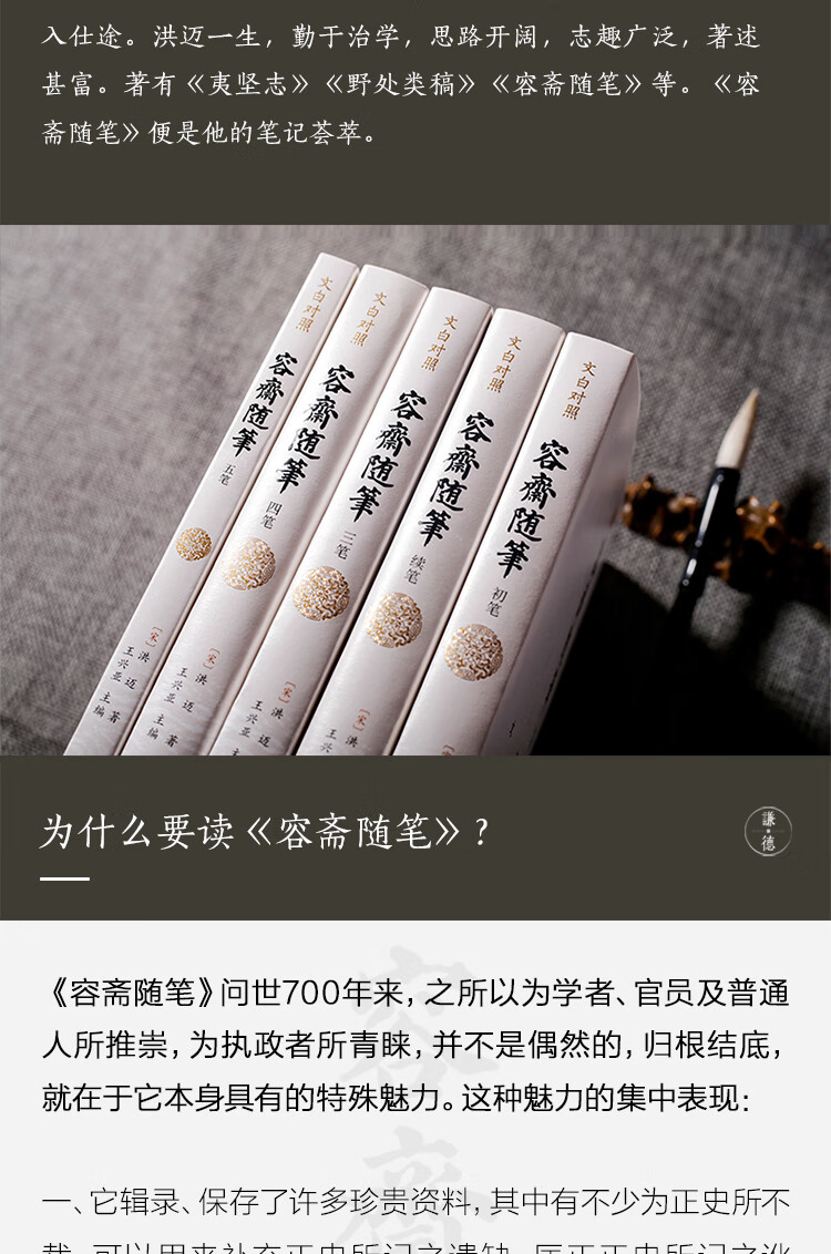 《容斋随笔 全五册 洪迈 文白对照全译本 一千二百二十则史料笔记 古代文言文小说 中国文学散文书籍》