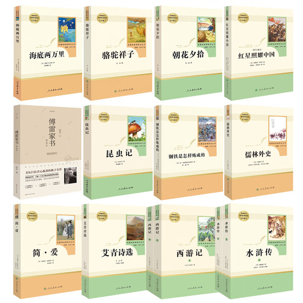 《初中必读名著十二本 人教版课外阅读书籍全套14册简爱骆驼祥子海底两万里西游记朝花夕拾原著正版12七八》