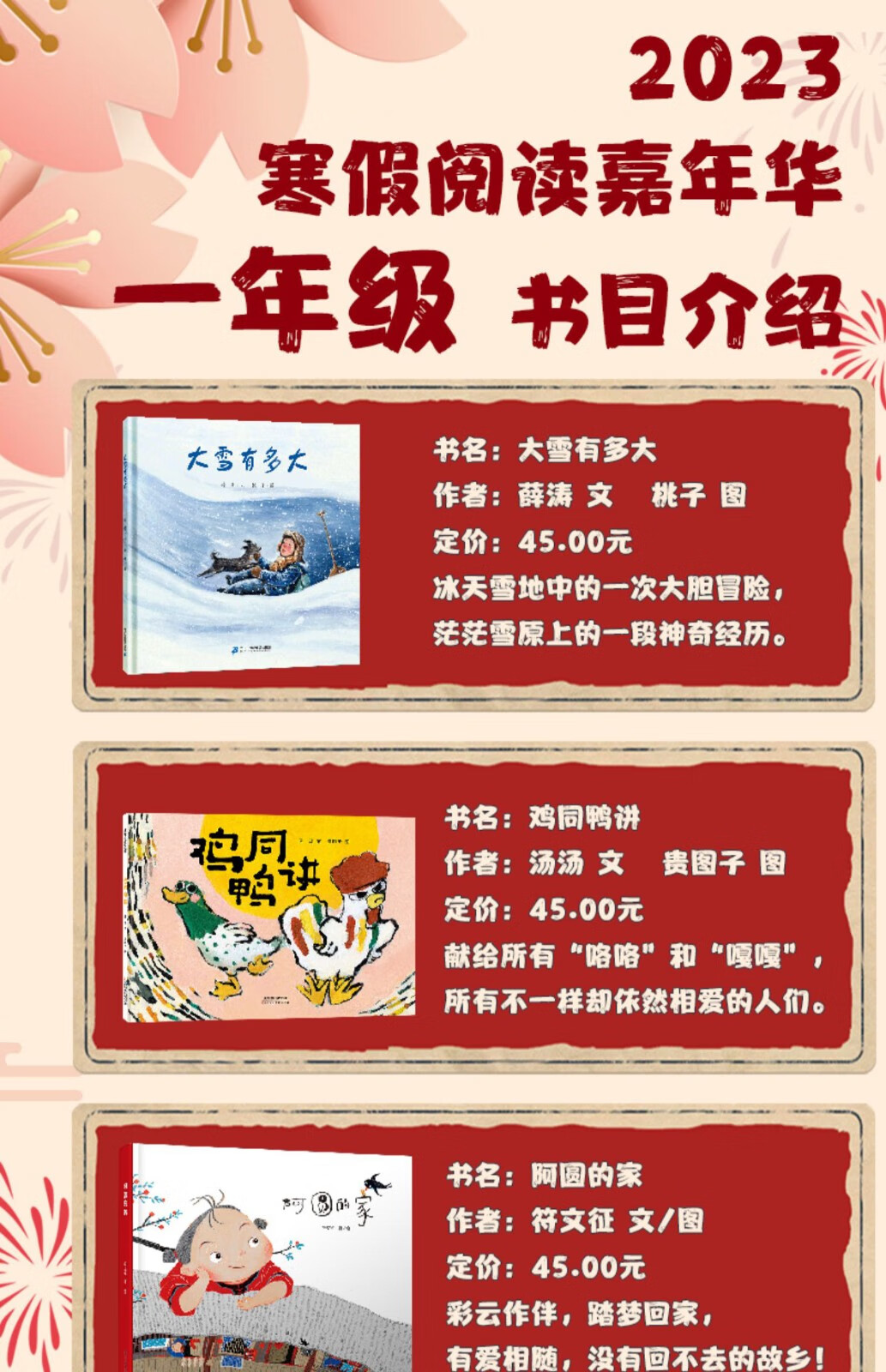 2023寒假百班千人一年级套装 寒假课外阅读书 大雪有多大+鸡同鸭讲+阿园的家+灶王节的故事+绿色的毛乌素+手套 2023百班千人祖庆说 全套6本》