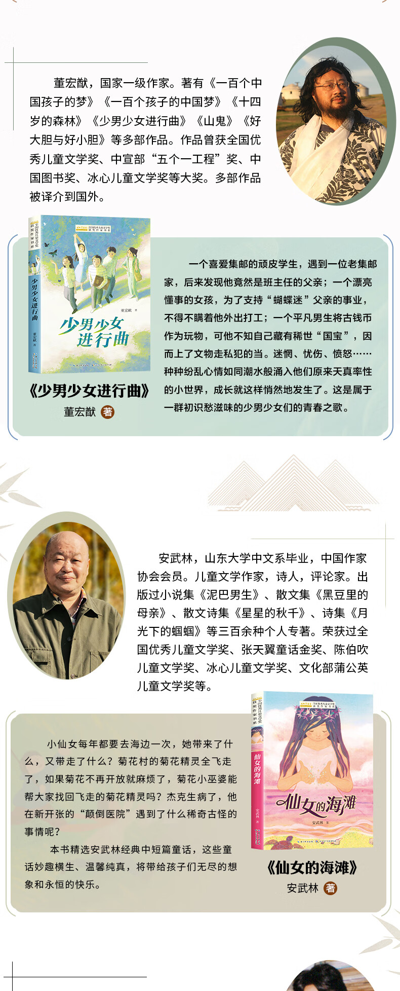 本套图书是全国优秀儿童文学奖获奖作家的作品集,书中有温馨动人的童话,有音韵和谐、朗朗上口的童谣诗歌,有充满想象力的奇幻故事……书中还配有精美的插图,让故事情节更加生动、鲜活。