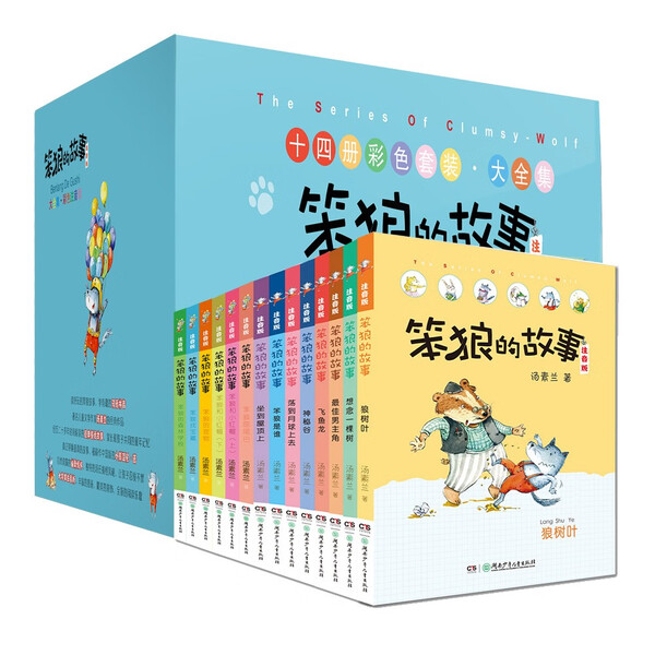 笨狼的故事”全彩注音版系列是湖南少年儿童出版社专门为小学一二三年级孩子打造的注音童话故事,是著名儿童文学作家汤素兰的经典作品。经历25 年时间检验的经典童话故事,家长和孩子共同的童年记忆。彩色手绘插图,超大的字体,准确的拼音,有趣的故事,给孩子们提供了一个快乐阅读的童年。图书包含《笨狼的森林学校》《笨狼找宝藏》《笨狼晾尾巴》《笨狼的宠物》《笨狼和小红帽(上)》《笨狼和小红帽(下)》《笨狼是谁》《想念一棵树》《*佳男主角》《飞鱼龙》《荡到月球上去》《狼树叶》《坐到屋顶上》《神秘谷》等,共14册,有笨狼的探险故事,笨狼的上学故事、家庭故事、旅行故事、朋友之间的故事等。经过二十多年的沉淀与流传,“笨狼的故事”成为中国当代儿童文学史上的经典作品,是可以成为孩子一生珍贵回忆的优秀童书。