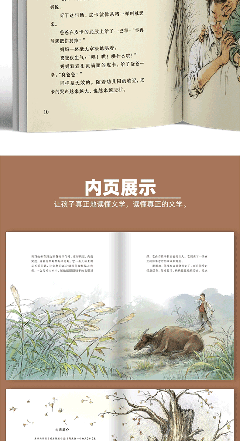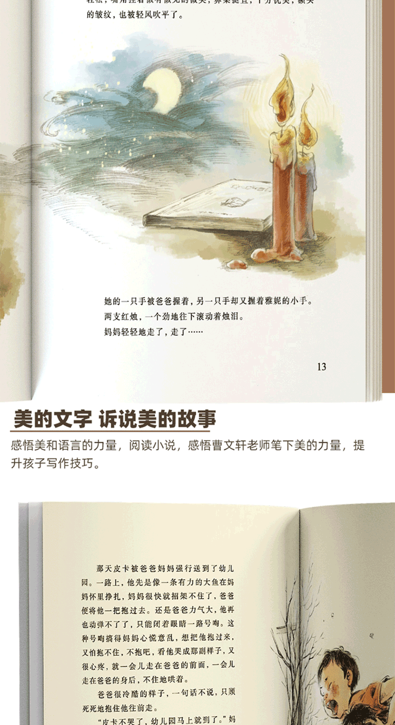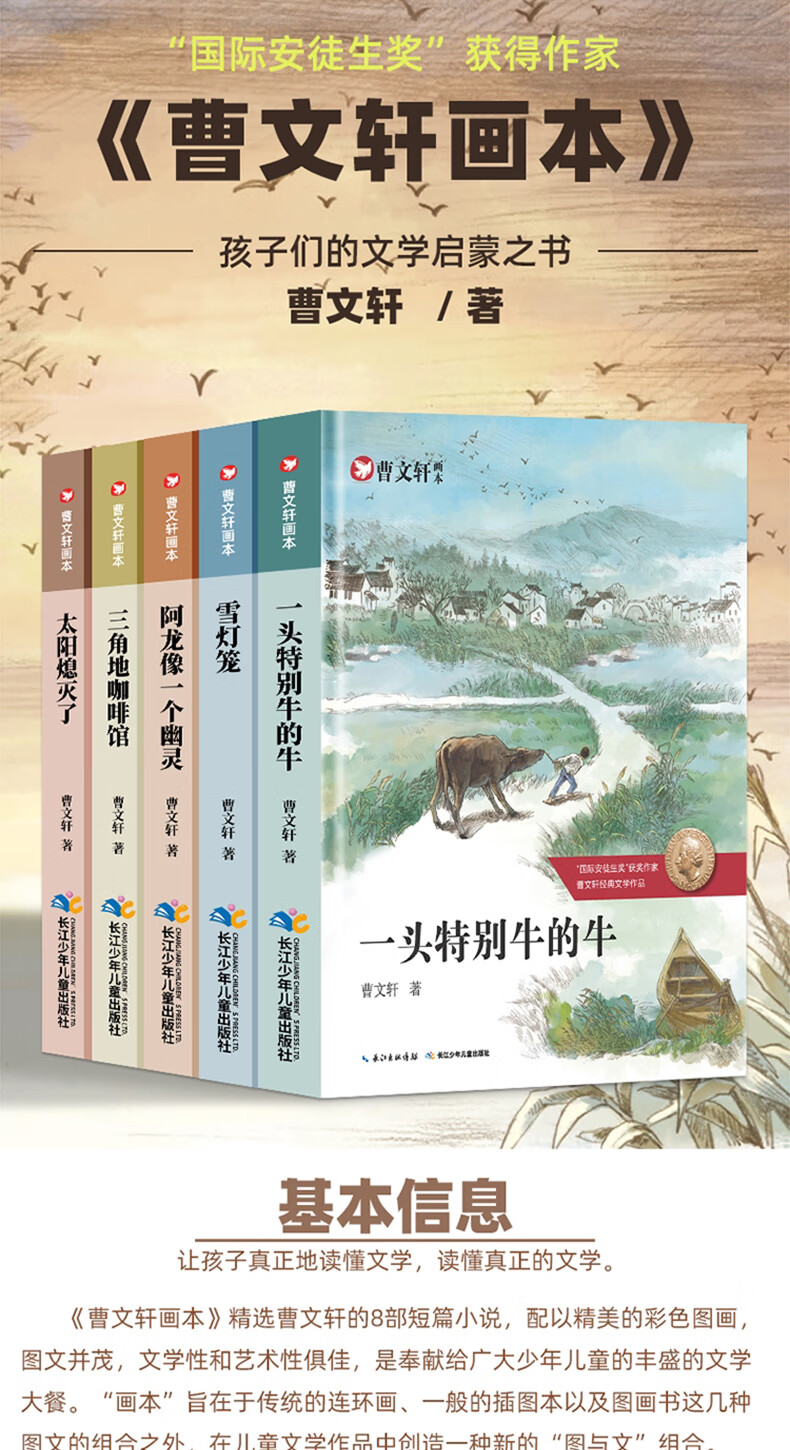 《曹文轩画本》精选曹文轩的8部短篇小说,配以精美的彩色图画,图文并茂,文学性和艺术性俱佳,是奉献给广大少年儿童的丰盛的文学大餐。“画本”旨在于传统的连环画、一般的插图本以及图画书这几种图文的组合之外,在儿童文学作品中创造一种新的“图与文”组合。