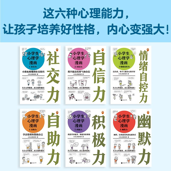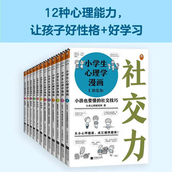 《小学生心理学漫画》是套献给小学的6-12岁孩子们的自助心理学读物。本套书目包括12种能力,分别是自信力、社交力、自信力、积极力、情绪自控力、自助力、幽默力、行动力、专注力、学习力、审美力、公开演讲力和性教育。每本书都从孩子真实生活出发,共457个心理案例。诸如想加入新团体、说话是害怕与人对视、不敢表达自己的意见、与压力友好相处、做某些事行动效率低到可怕、专注于重要的事情、怎样主动排除外界干扰、学会现场学习借鉴等……既培养孩子好性格,也帮助孩子高效学习。